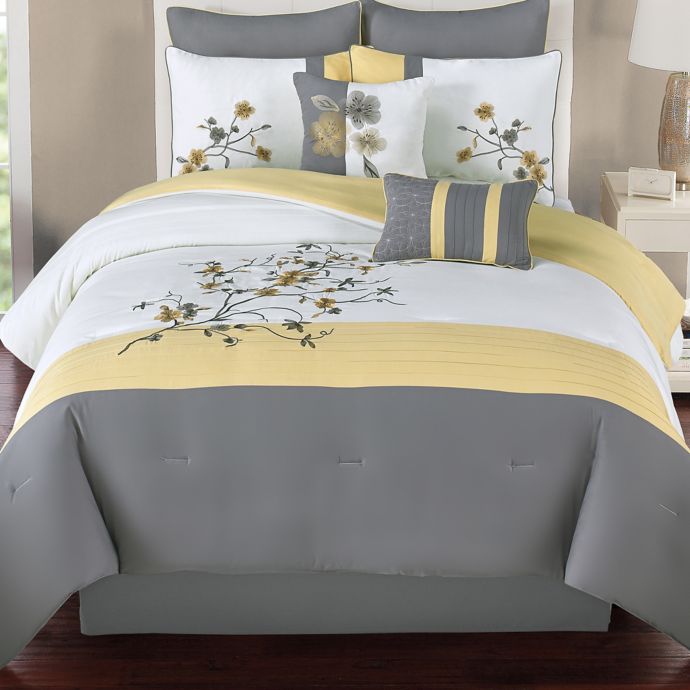 Comforter Sets Queen Yellow / Just Home Gray & Yellow Dandelion 8-Piece Queen Comforter ... / Queen comforters sets save on time as they sit comfortably when tucked into beds, thus making them convenient and hassle free.